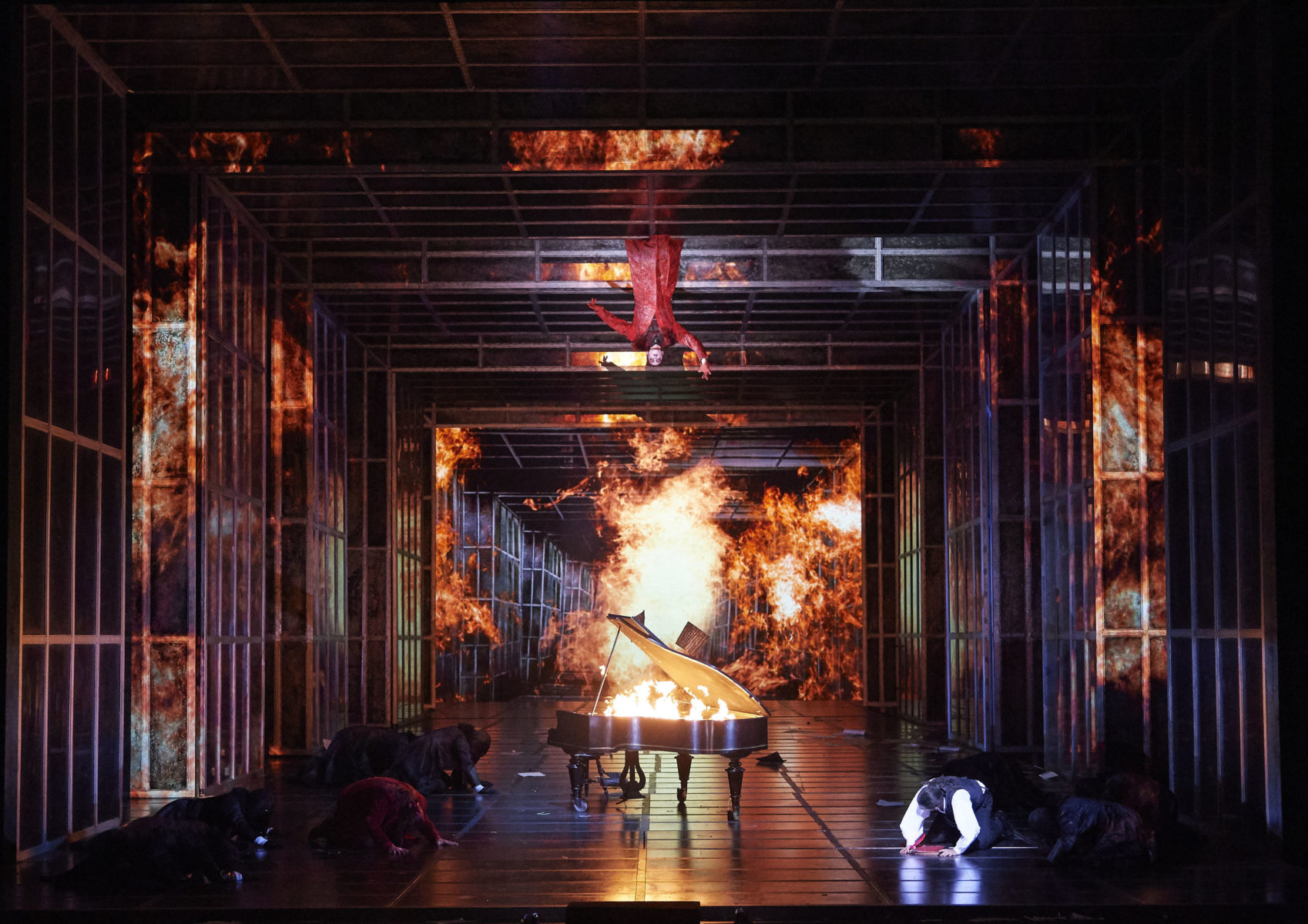 The director, Christian Räth and I re-imagined the folkloristic narrative to a large degree, envisaging Max as a young Romantic composer who creates the opera we see unfold before us. His inability to shoot is subsequently seen as a creative block. The characters around him, including mysterious figures dressed as birds, emanate from his imagination.
