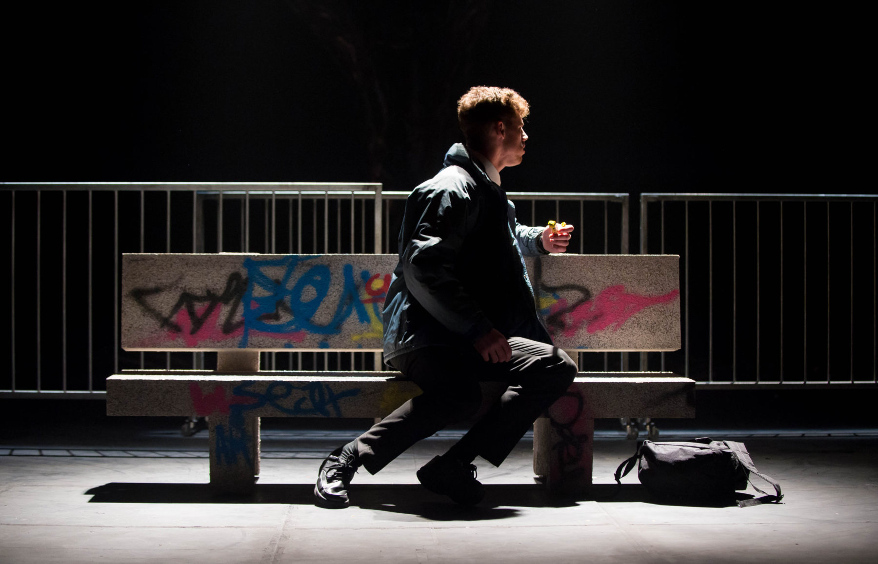 I tried, string, rope, fabric, wire, before coming to metal mesh that reflected the harsh world of the play and the metal “grill” one of the teenage characters in pushed into. We decided the branches should come in gradually each scene to represent the group being dragged further and further into their problem. The final image then has the branches all around them. Then we explored the other parts of the set as a naturalistic slice of each location.